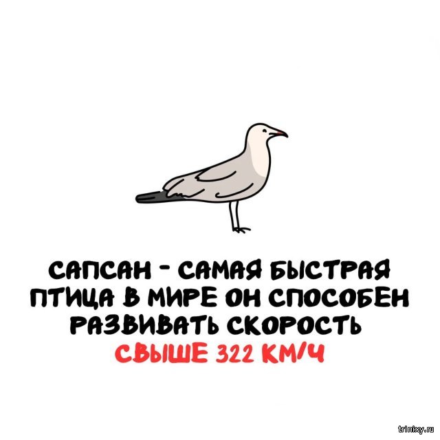 Каждый раз возмущаюсь,читая про сапсан.Почему никогда не уточняют,что это скорость во время "вертикального падения",со сложенными крыльями! По горизонтали он летает довольно таки скромно.А вот стриж...это действительно рекордсмен по скорости.Ему нет равных! Несправедливо.