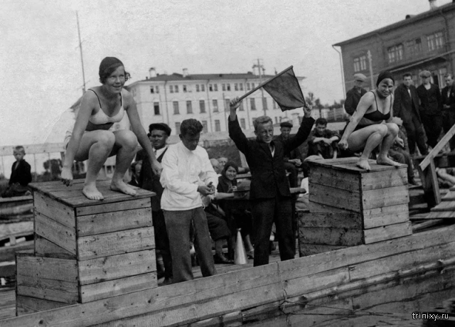 Женские соревнования по плаванию на Северной Двине. Автор: Калестин Коробицын. Архангельск