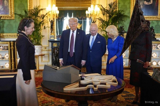 В Интернете новый мем: давеча Дональд Трамп прилетел к королю Великобритании Карлу III, но больше всего вопросов вызвал супер странный наряд его жены — Мелании. На встрече супруга президента США была в чёрном костюме и в большой фиолетовой шляпе, за которой пыталась спрятать лицо. Вокруг этого сразу же появилось множество мемов и шедевров фотошопа.