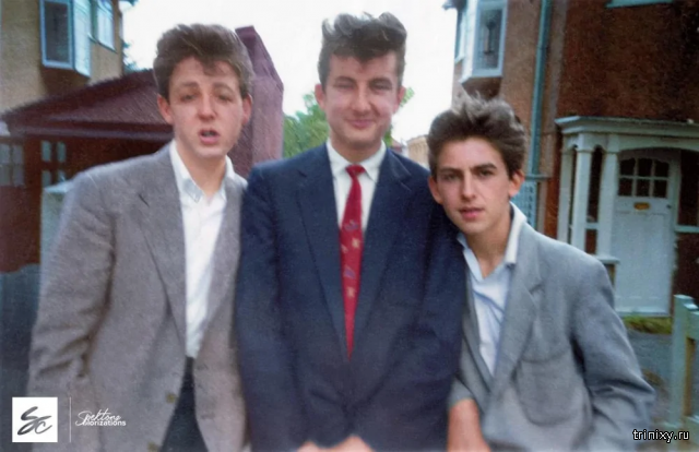 2. Пол Маккартни, Иван Воган (в центре) и Джордж Харрисон, Ливерпуль, 1958 год
