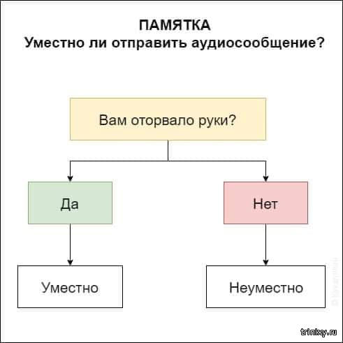 Голосовые сообщения - это удобно. В определенных ситуациях... Но когда ими пользуются постоянно - это начинает раздражать. Как же вежливо намекнуть этим говорунам, чтобы они перестали спамить голосовухами? Есть один очень тонкий способ...