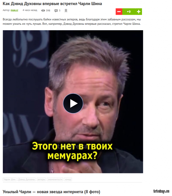Всегда любопытно послушать байки известных актеров, ведь благодаря этим забавным рассказам, мы можем узнать их чуть лучше. Вот, например, Дэвид Духовны впервые рассказал, стретил Чарли Шина.