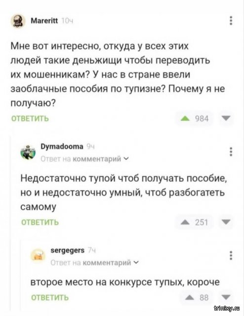 Лучшие шутки и мемы из Сети - 25.11.2025 (15 фото) AllaChe Сегодня, 14:26 +1 # А еще всегда ждала до конца, когда же все попадают. И классно, когда падает прямо сразу вниз и мееедленно так отползает.