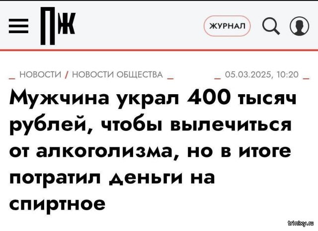 Лучшие шутки и мемы из Сети - 01.12.2025 (15 фото) ChornyiYozheg Вчера, 19:02 +1 # Всё правильно сделал! Зачем лечиться, когда есть на, что выпить.