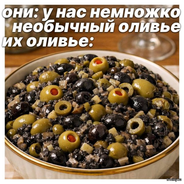 Шпаргалка: рецепты легендарных новогодних салатов (6 фото) ChornyiYozheg Сегодня, 08:06 0 # Кошки жрать хотят. Отдам сметану. Вкусная. Пойду пожру оливье. ))) И похмелюсь.